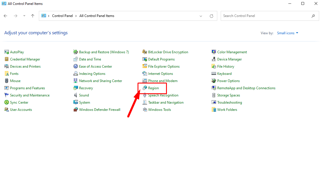 3. คลิ๊ก icon Region แก้เปิดหน้าต่างแก้ไขภาษา